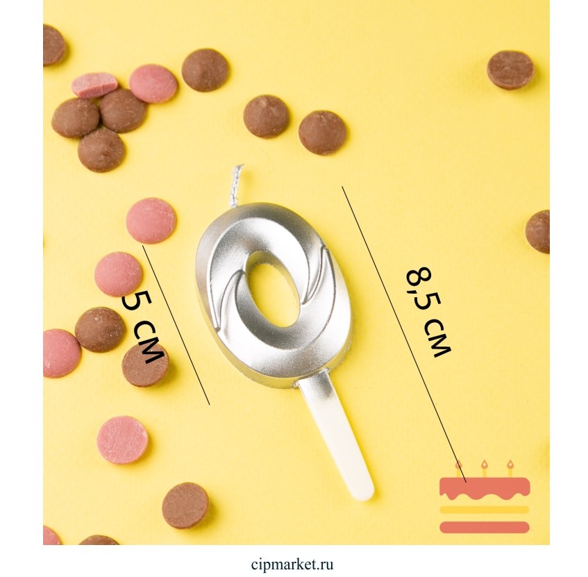 Свеча в торт цифра "0" Серебро. Высота 8,5 см