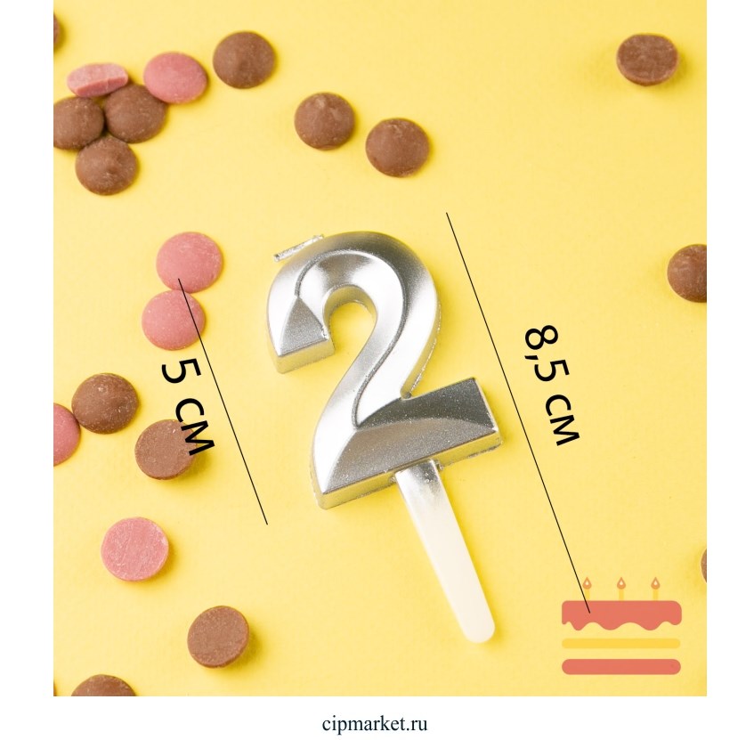 Свеча в торт цифра "2" Серебро. Высота 8,5 см