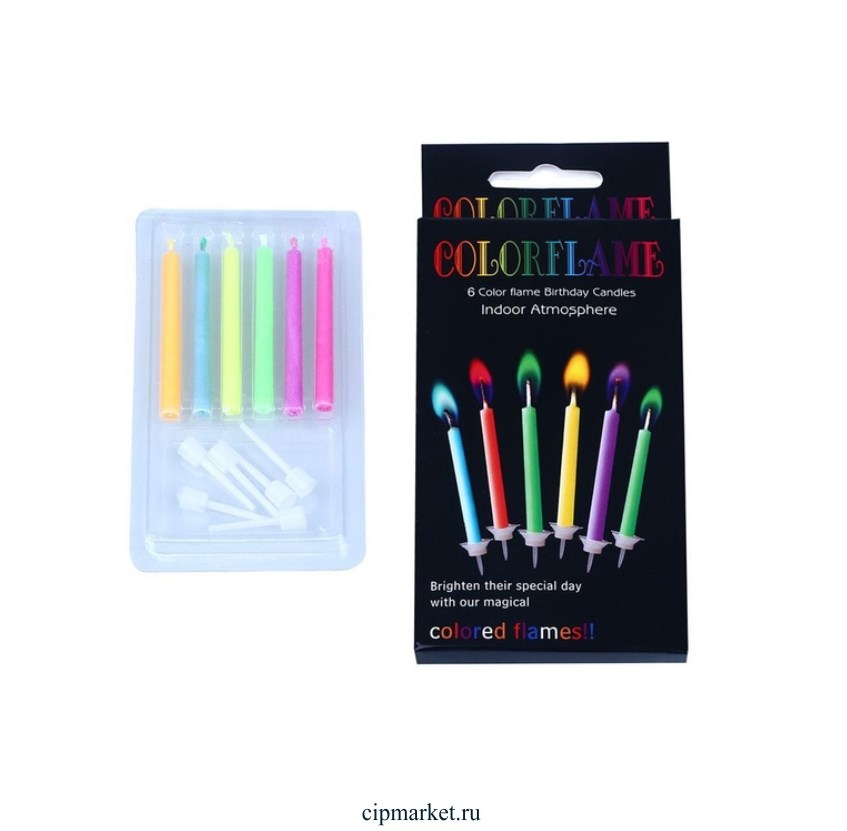 Свечи для торта цветной огонь(6 шт) .Высота 5,5 см.