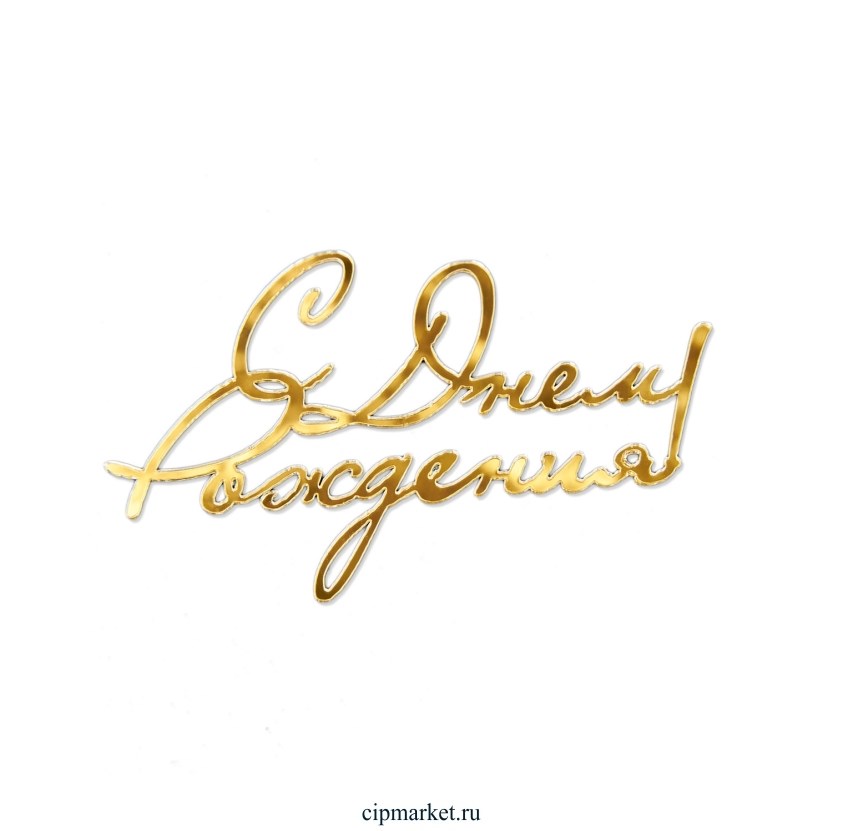 Топпер боковой "С Днем Рождения!", золото. Размер 9,5х6,5 см.
